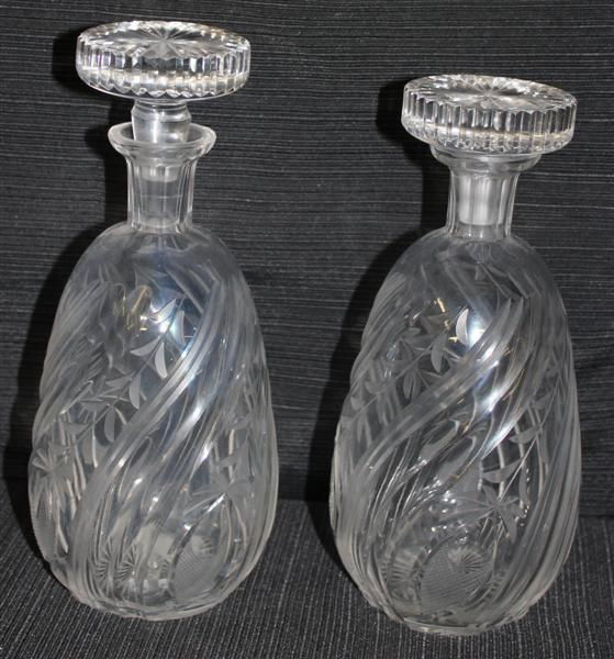 Pair Etched Crystal Decanters