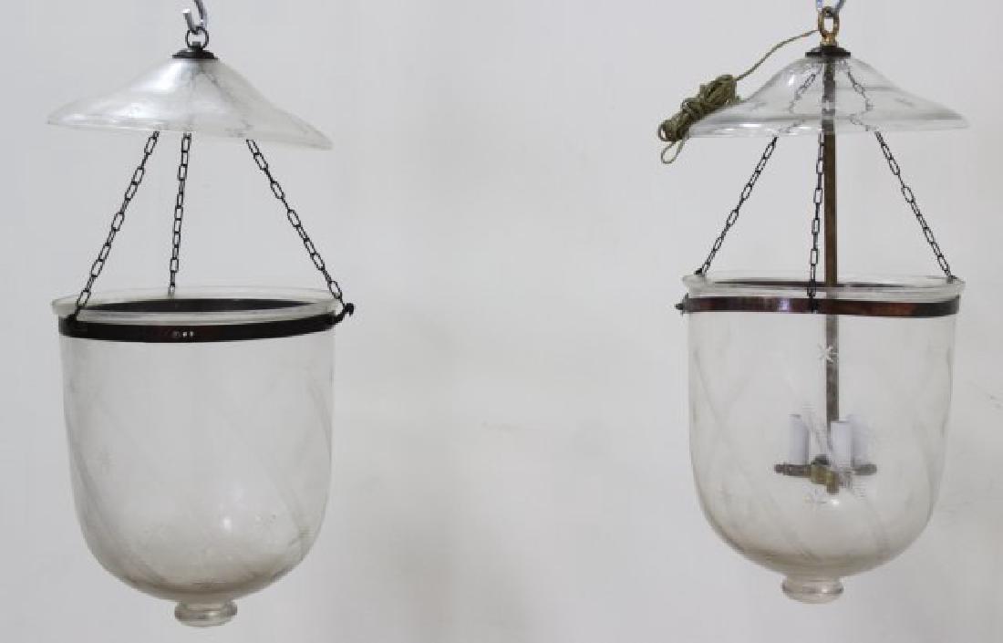 Pair Etched Glass Bell Lanterns