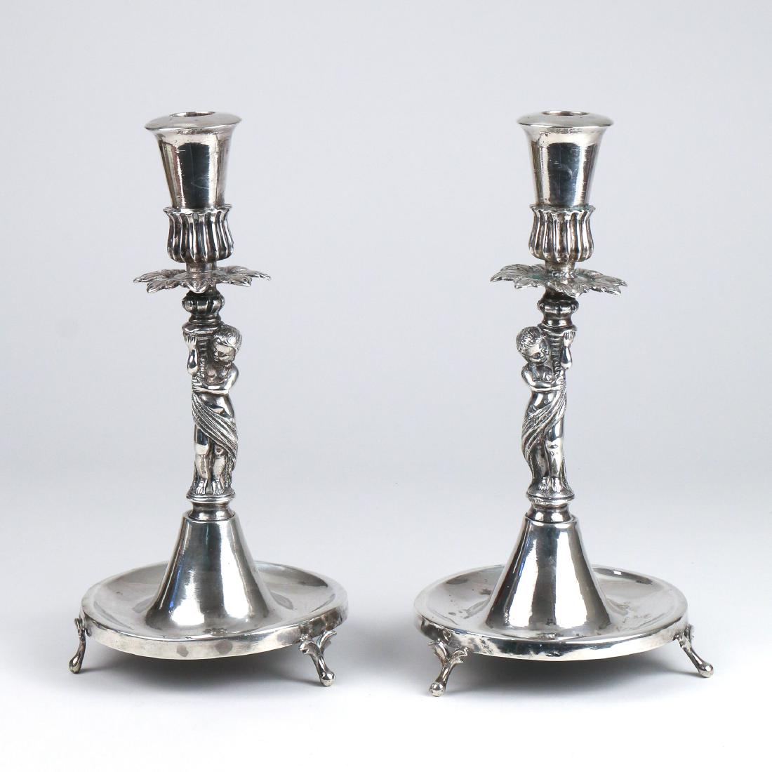 PAIR FIGURAL CONTINENTAL SILVER CANDLESTICKS