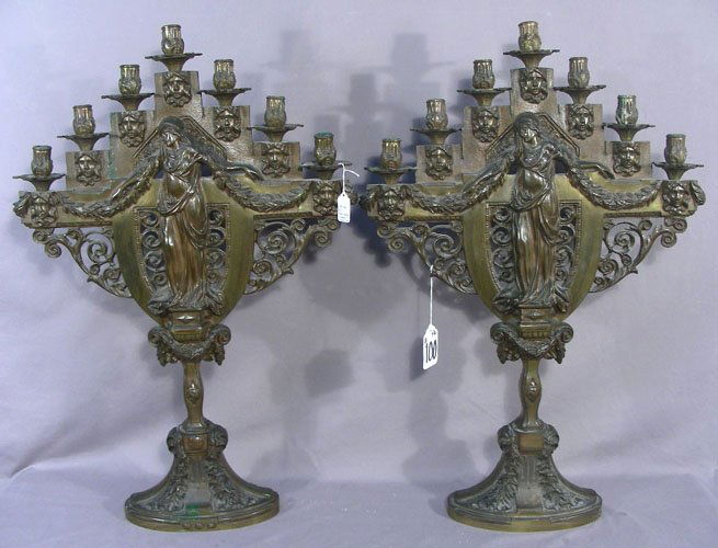 PAIR FINE BRONZE FIGURAL CANDELABRA