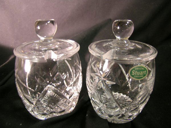 PAIR FINE STUART CUT CRYSTAL MUSTARD JARS