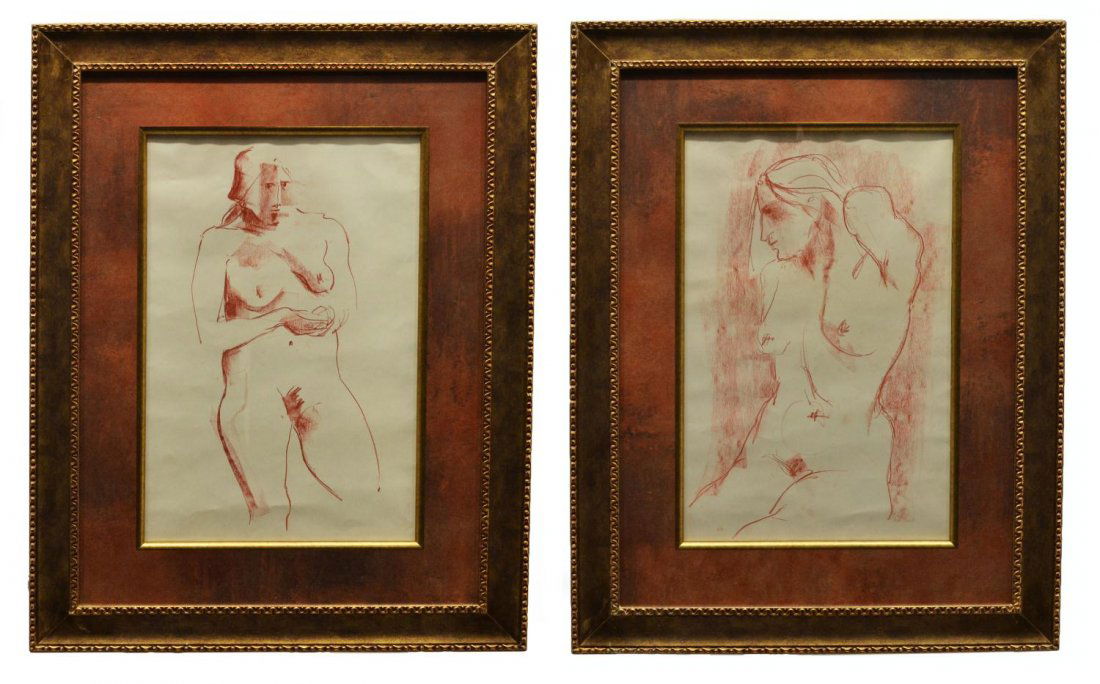 (PAIR) FRAMED NUDE DRAWINGS