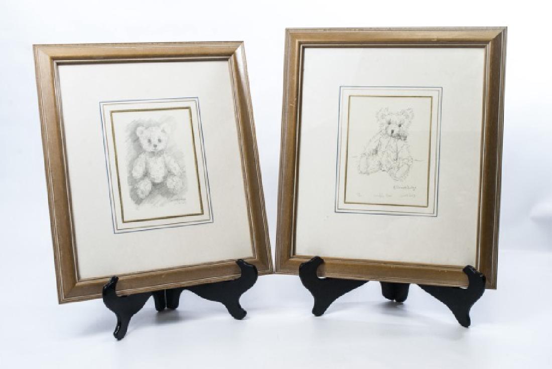 Pair Framed Signed Janet Judge Teddy Bear Prints