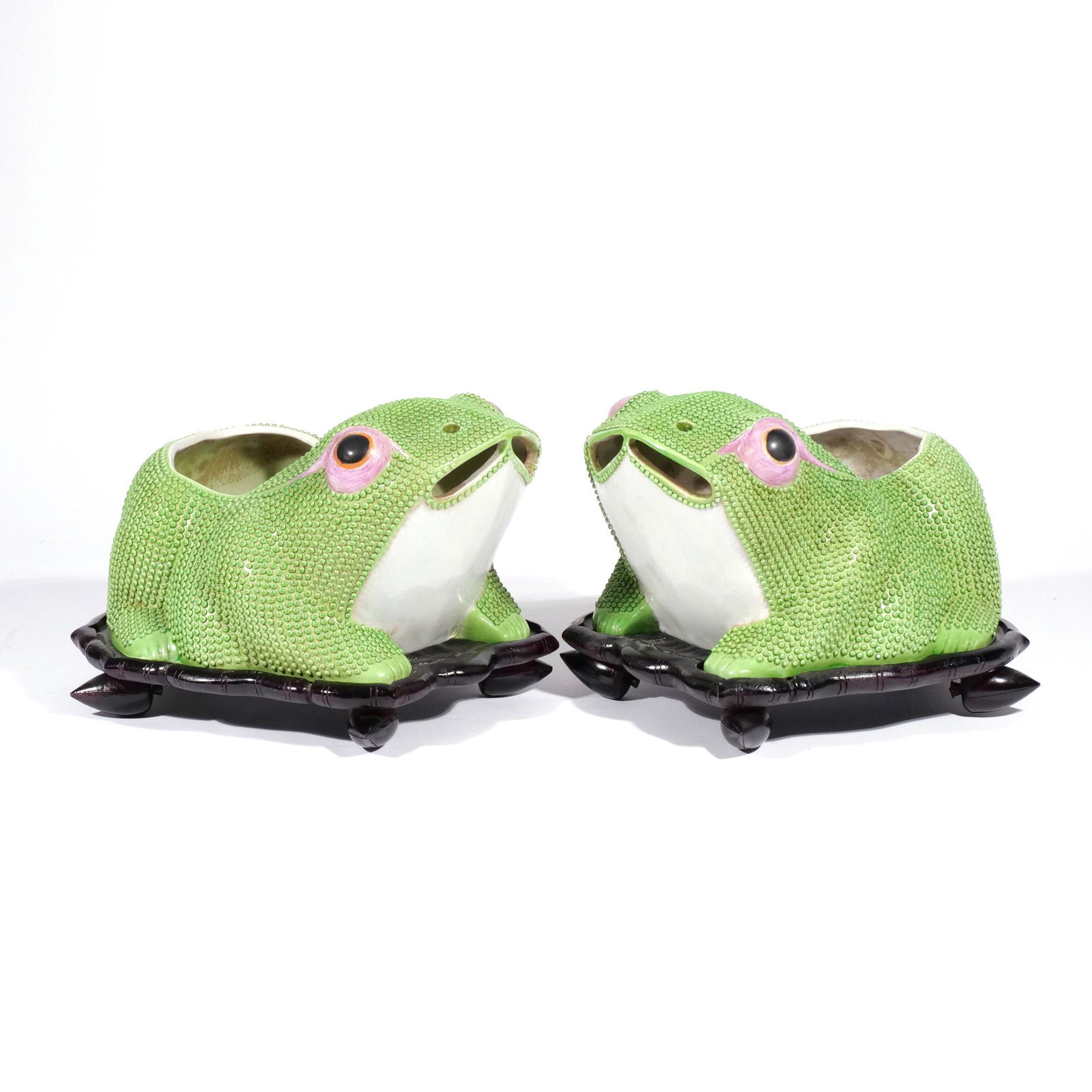 PAIR FRENCH CERAMIC CACHE POT FROGS