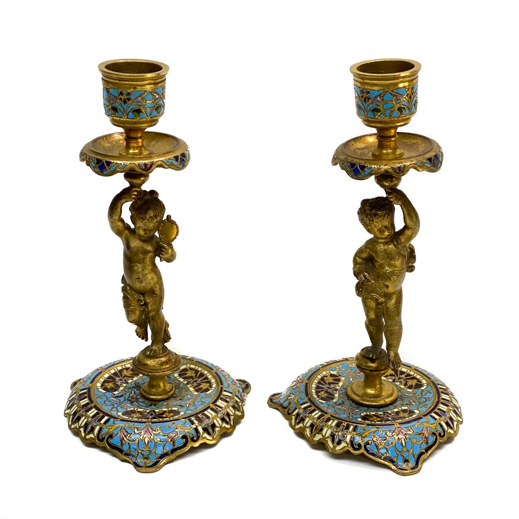 Pair of French Champleve Enamel Bronze Candlesticks, 19th CenturyWorld of Antiques, Inc.4(77)$5005 days Left