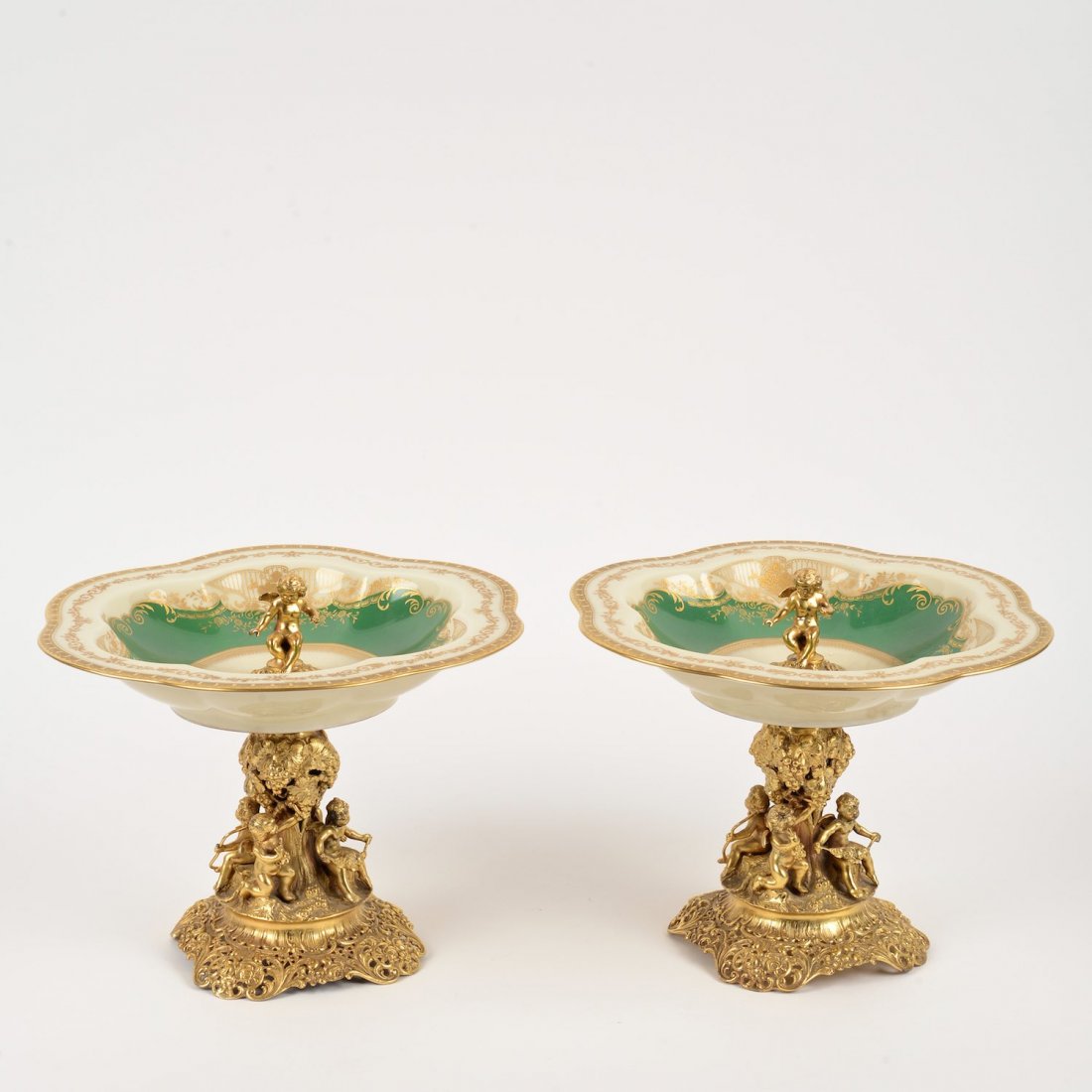 Pair German .800 Silver Gilt Figural Compotes