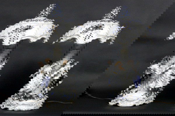 Pair German Lithophane Lamps