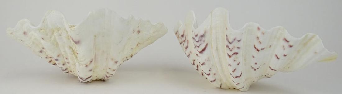 SoldNATURAL WHOLE COMPLETE GIANT CLAM SHELL 10"NATURAL MATCHING PAIR WHOLE COMPLETE GIANT CLAM SEA SHELL -10" APPROX -VERY GOOD CONDITION -DP52124See Sold Price