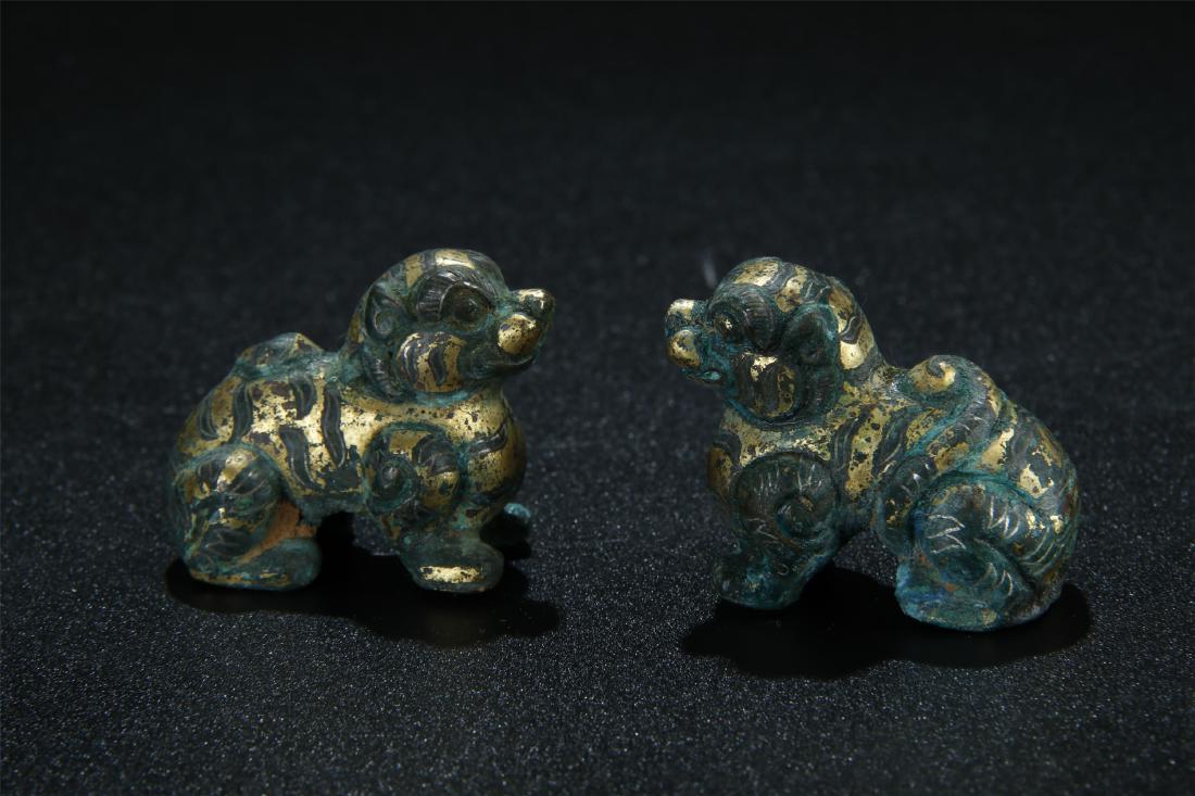 Pair gold inlaid bronze paperweights