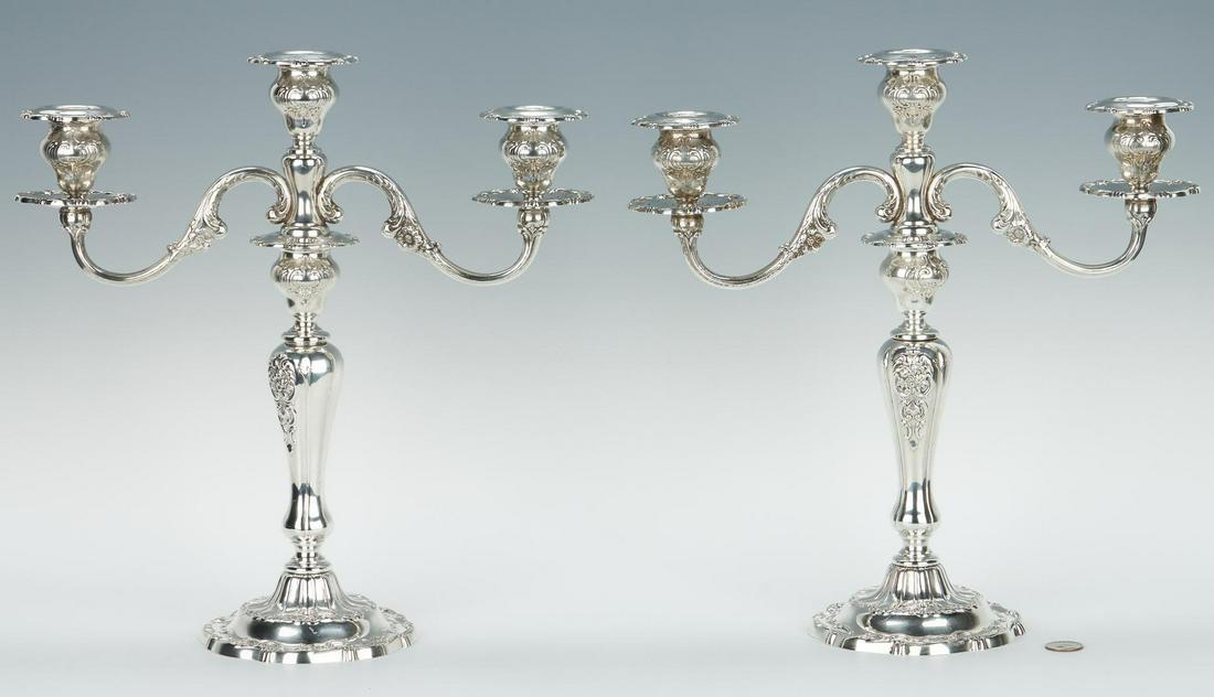 Lot of Weighted Sterling Silver Items1 day LeftPair of Gorham Sterling Silver Three Light CandelabraFeb 06, 2026Pair of English Sterling 5-Light Candelabra4 days LeftPair Hunt and Roskell English Sterling Silver Candelabra4 days LeftPair of American Sterling Silver Five-Light Candelabra, Presented to Gertrude Vanderbilt WhitneyFeb 11, 2026Gorham Sterling "Puritan" Silver Candelabras, #638Feb 08, 2026Pr Wallace Weighted Sterling Candelabras 1324.2 gFeb 03, 2026Regency Style Weighted Silver Plate Candelabra, 2Mar 12, 2026Antique Pair of English Silver Plate Candelabras c. 19th Century2 days LeftPair of Tiffany & Co. Sterling Silver Five Light Candelabra1 day LeftPair of Estate Silver-Plated Five-Arm CandelabrasFeb 05, 2026A PAIR OF GEORGE III SILVER THREE-LIGHT CANDELABRA MARK OF SEBASTIAN AND JAMES CRESPELL, LONDON,Feb 11, 2026Pair of Antique William Hutton & Sons Sterling Silver Rococo Candelabras7 hrs LeftGorham Sterling Silver Weighted Candlesticks, PairMar 12, 2026REED & BARTON 800 3-CANDELABRA SILVERPLATE PAIRFeb 15, 2026Handmade 925 Sterling Silver 2 Light Candelabra Ornate Design4 days Left