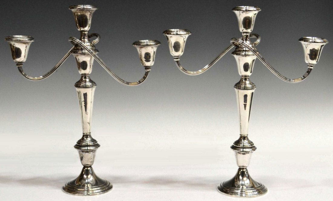 PAIR GORHAM WEIGHTED STERLING 3-LIGHT CANDELABRA