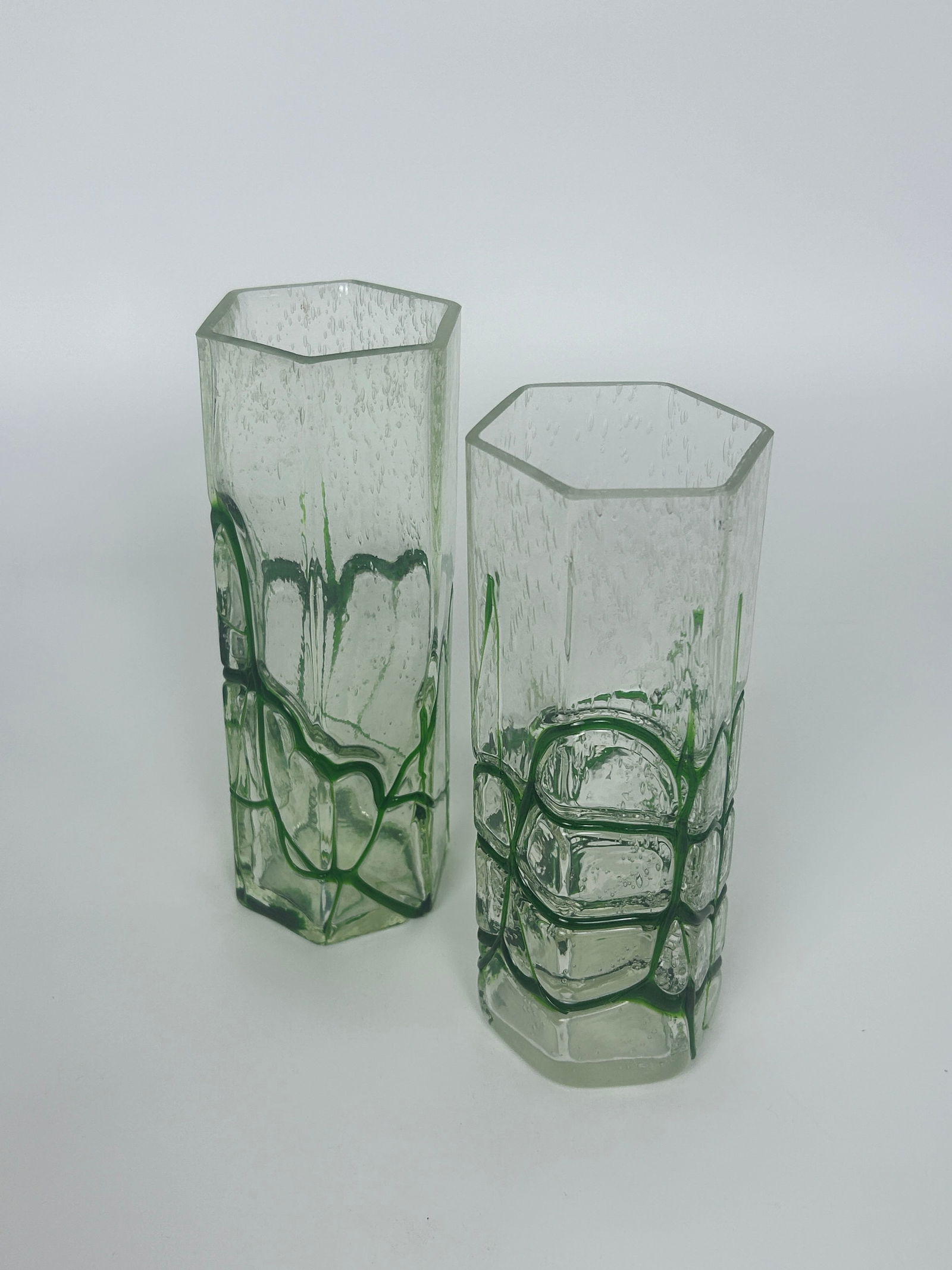 Pair Green and Clear Vases