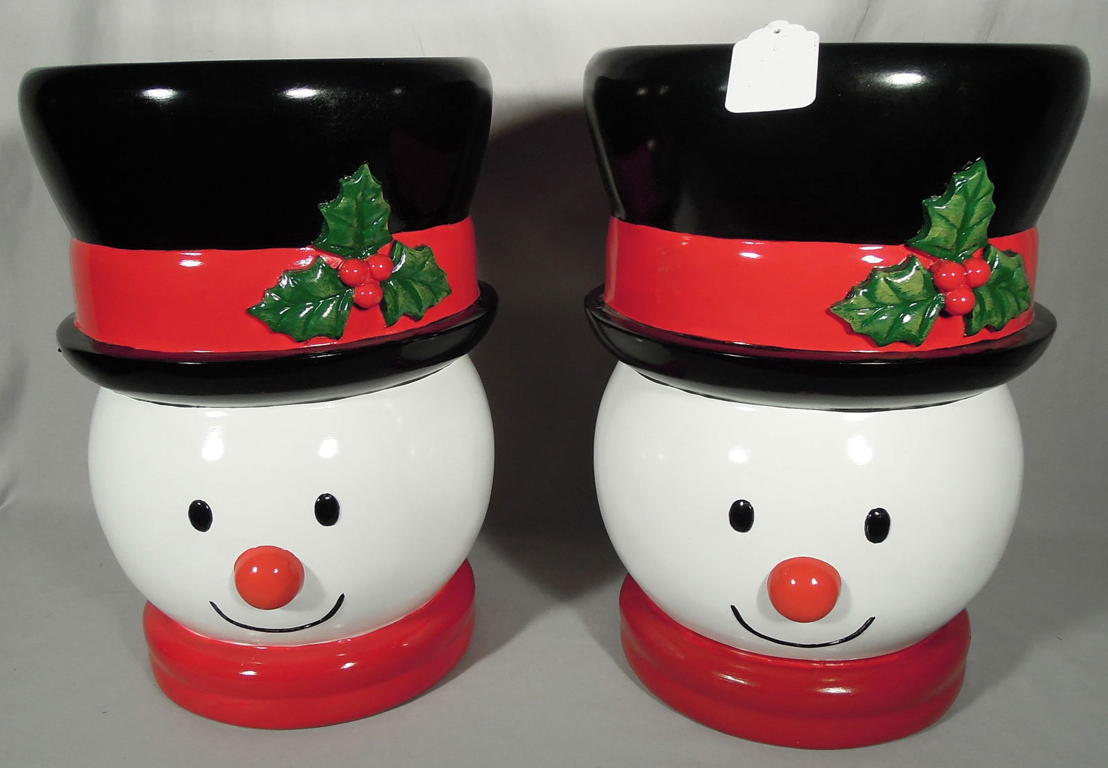 PAIR HAND PAINTED COMPOSITION SNOWMAN STOOLS