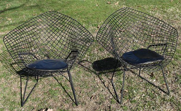 PAIR HARRY BERTOIA WIREWORK DIAMOND CHAIRS, C. 1960