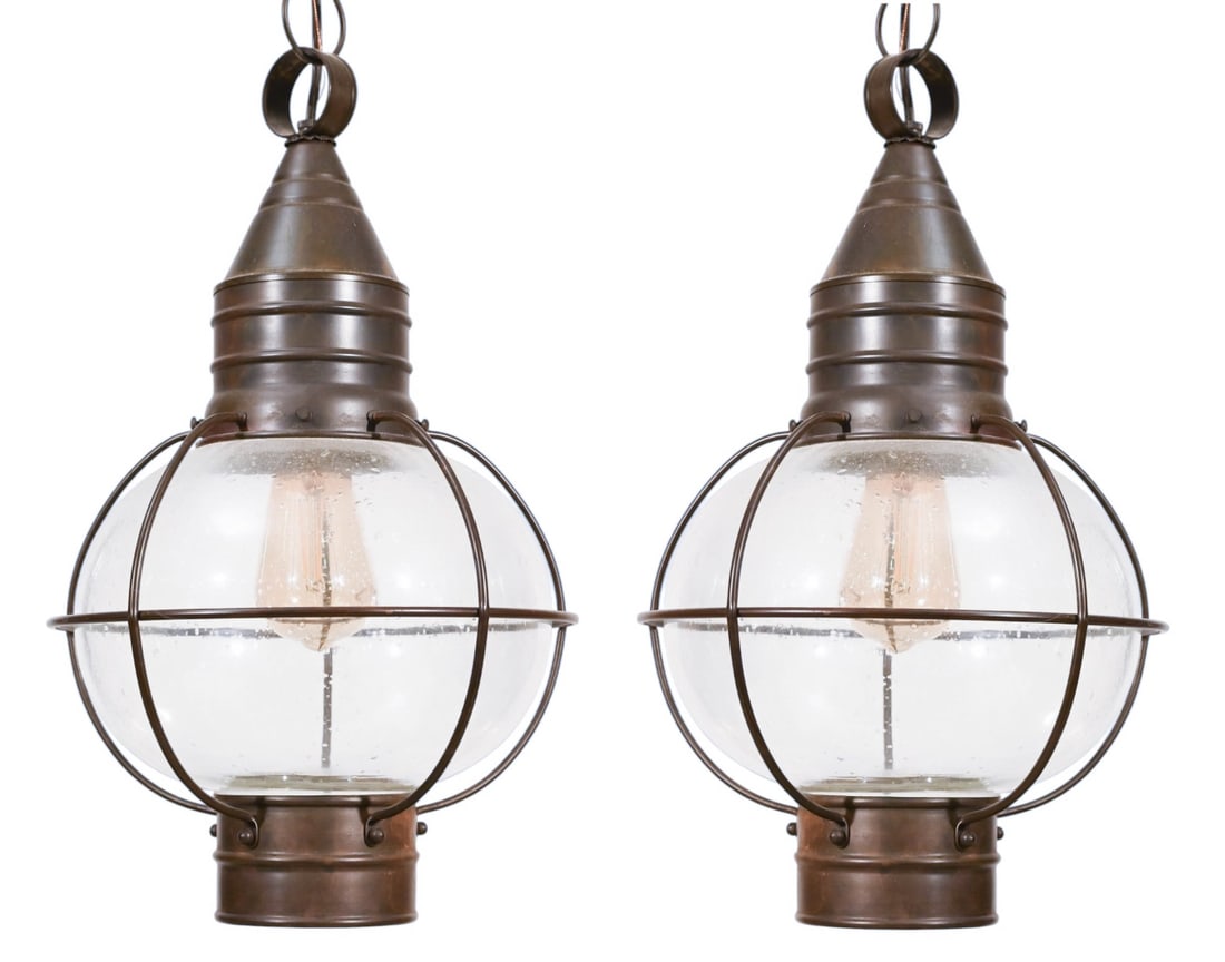Pair Hinkley Cape Cod Rubbed Brass Pendant Lights