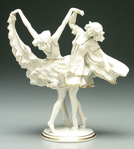 Pair Hutschenreuther dancing figures, lad