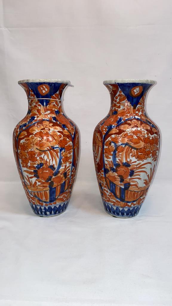 PAIR IMARI VASES ~ 11 3/4" TALL