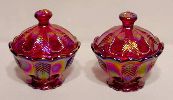 Pair Imperial Sunset Ruby Covered Boxes