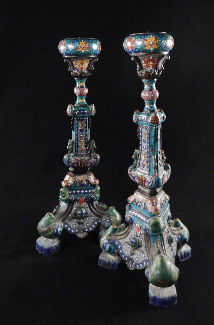 Pair Impressive Cloisonné Candlesticks