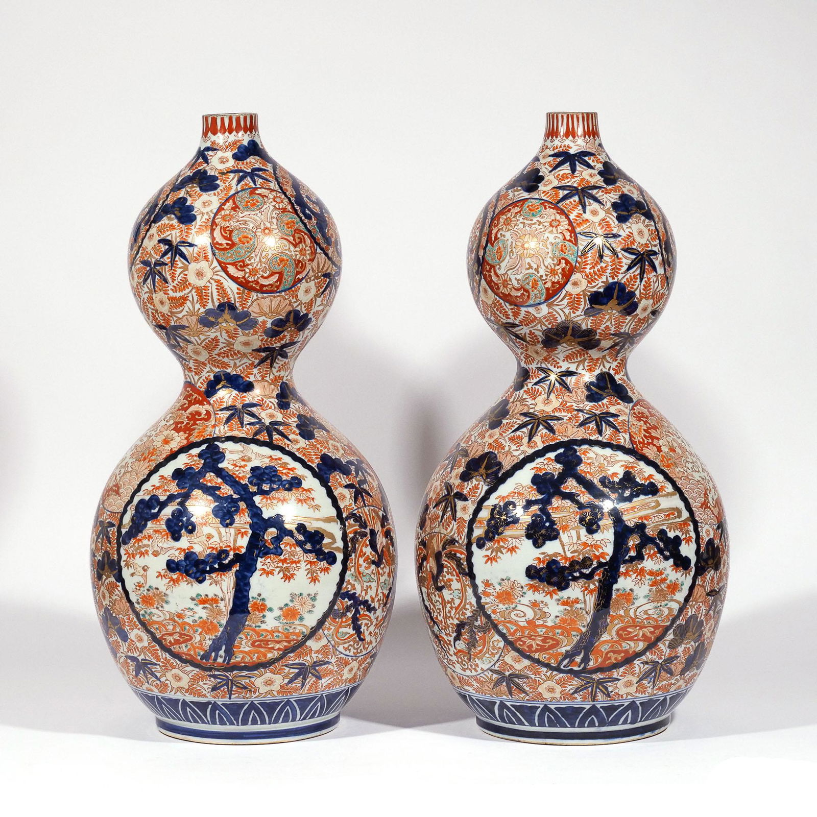 PAIR IMPRESSIVE IMARI DOUBLE GOURD VASES