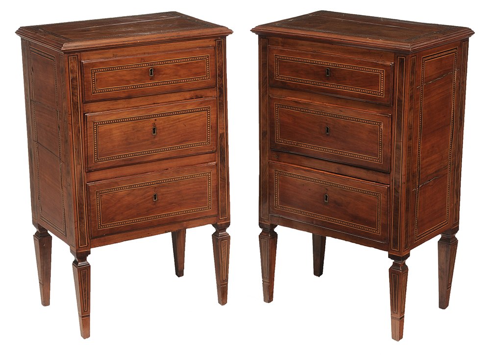 P. Nathan - French Style Highboy and Commode5 days LeftA Pair of Rococo Style End Tables5 days LeftCentury Furniture Co. Two Drawer Bed Side StandMar 07, 202619th Century French Louis Philippe Walnut Nightstands Set with Marquetry Tops570 Lots AwayHandsome Pair English George III Inlaid Mahogany Bachelor's Chest of Drawers7 days LeftPair Of Antique French Louis XV Mahogany & Satinwood Inlaid 2-Drawer StandsMar 07, 2026A PAIR OF ITALIAN WALNUT AND MARQUETRY THREE DRAWER COMMODINI, 19TH CENTURYMar 03, 2026French Empire Style Mahogany Bedside Cabinets, 2Mar 05, 2026FRENCH LOUIS XVI BRASS-INLAID WALNUT 3-DRAWER COMMODE19 hrs LeftFRENCH NEOCLASSICAL 4-DRAWER BURLWOOD COMMODE383 Lots AwayFrench Provincial Miniature Marquetry Chest of Drawers, Bush Family Provenance4 days LeftElegant Italian Inlaid 3 Drawer Chest with Leather Top5 days LeftPair of French Provincial Louis XV Style Bombé Commodes, MartelMar 07, 2026SPANISH-STYLE INLAID & CARVED MAHOGANY COMMODE19 hrs LeftSet of 2 French Louis XVI Style Walnut Nightstands with Drawers Circa 1980Mar 03, 2026French Empire Inlaid Mahogany CommodeMar 15, 2026