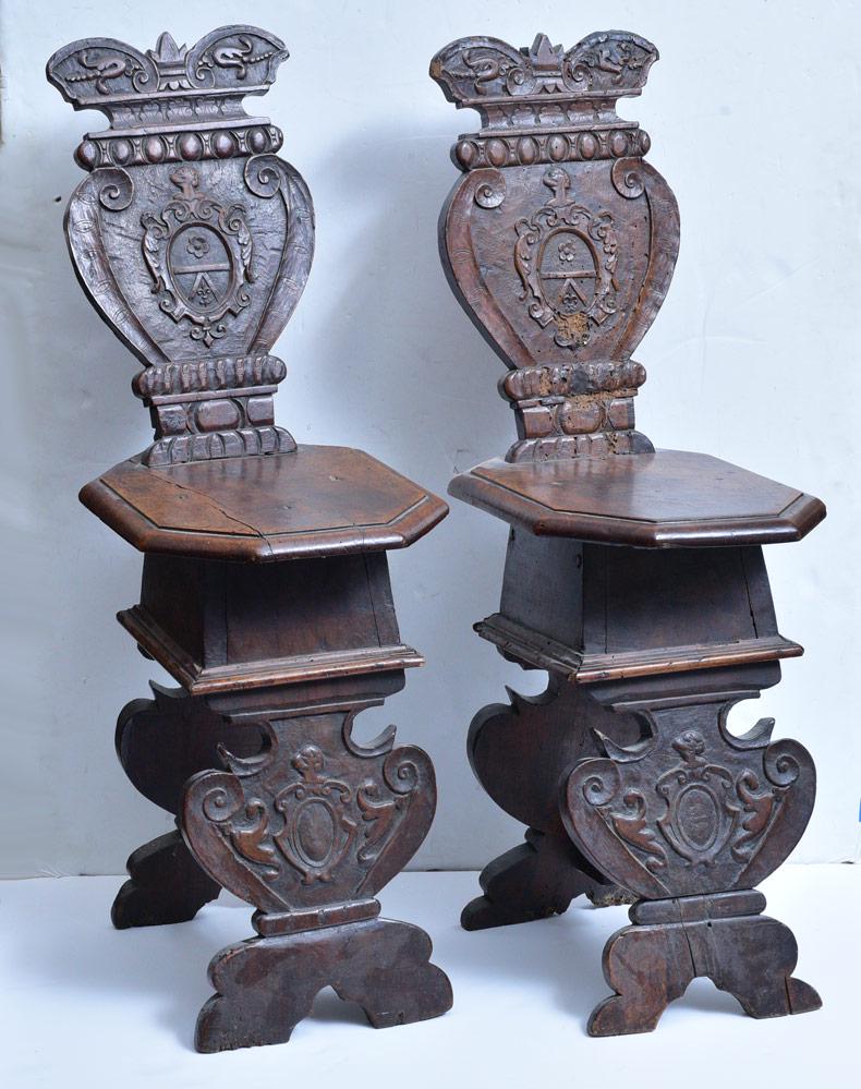 Antique Italian Renaissance Revival Carved Ornate Figural Walnut Hall Side Chairs - PairChairish Auctions4.5(10.3k)$600