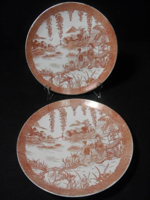 PAIR JAPANESE AMBER TRANSFERWARE PLATES