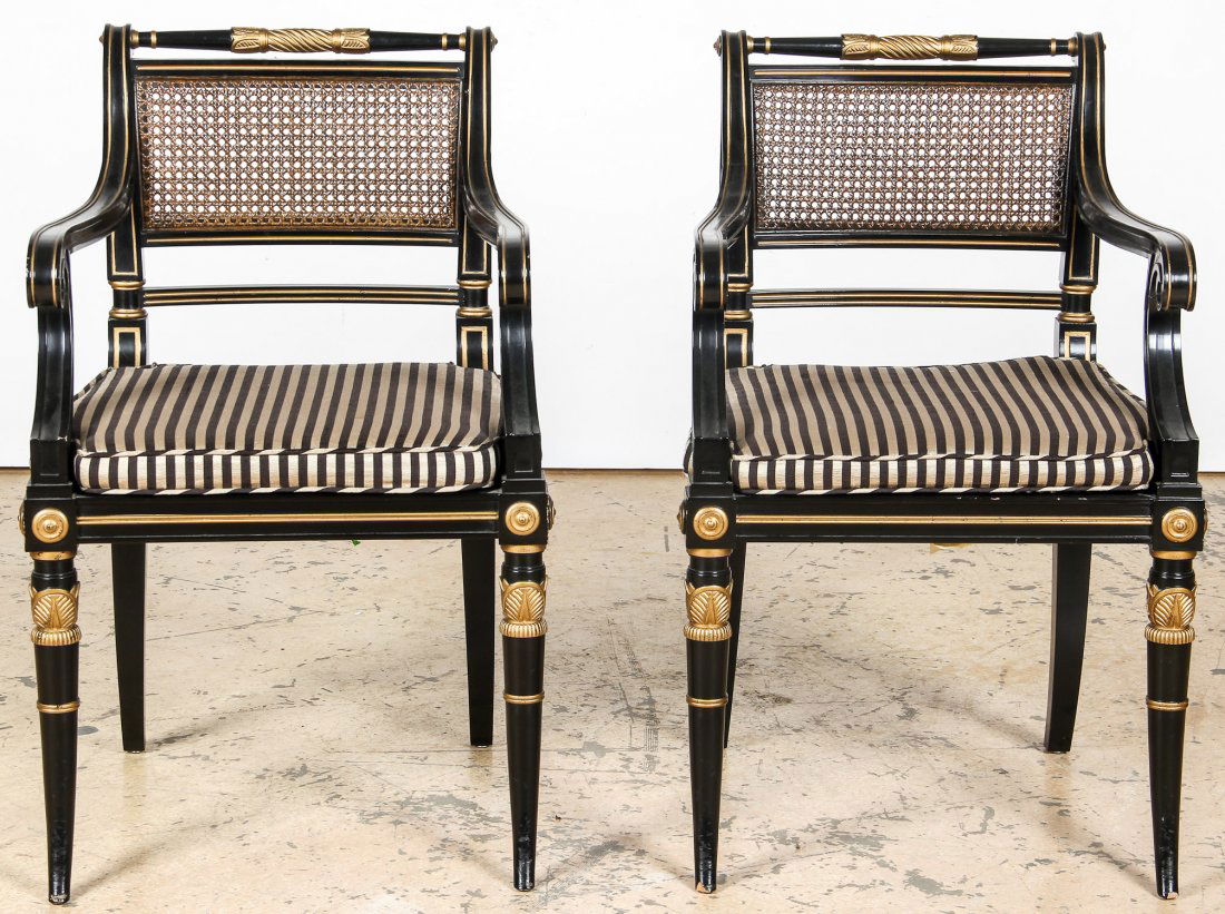 PAIR OF REGENCY STYLE BRONZE MOUNTED AND EBONIZED OPEN ARM CHAIRS WITH UPHOLSTERED BACKS AND SEATS.Kamelot Auctions4.4(346)$325Mar 24, 2026