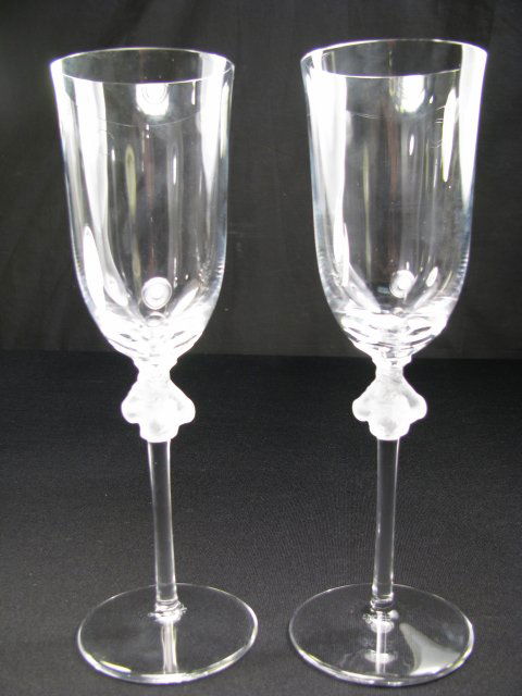 PAIR LALIQUE CRYSTAL ROXANNE STEM GLASSES