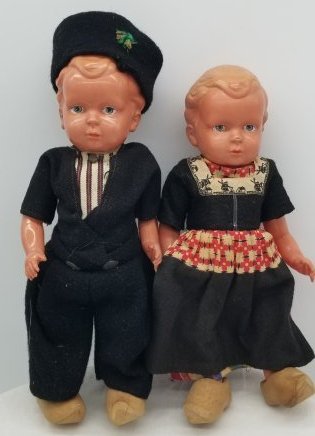 Pair Large Celluloid Dutch Dolls ~ Original Clothes