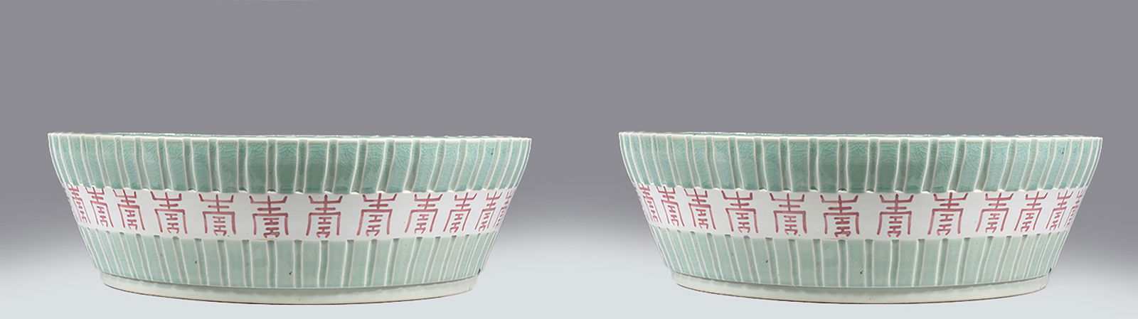 Pair Large Chinese Ceramic Celadon Bowls