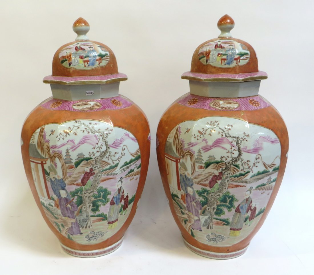 PAIR LARGE CHINESE EXPORT ROSE MEDALLION LIDDED VASES