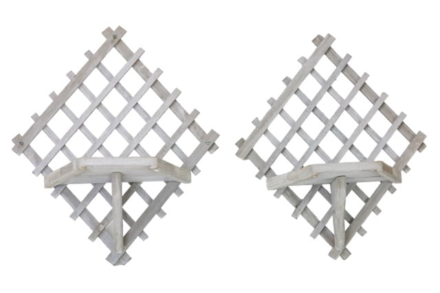 Pair Lattice White Washed Wall Shelves or Brackets