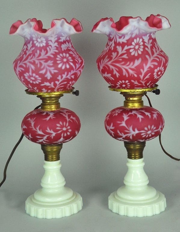 Pair L.G Wright Cranberry Opalescent Lamp Stands