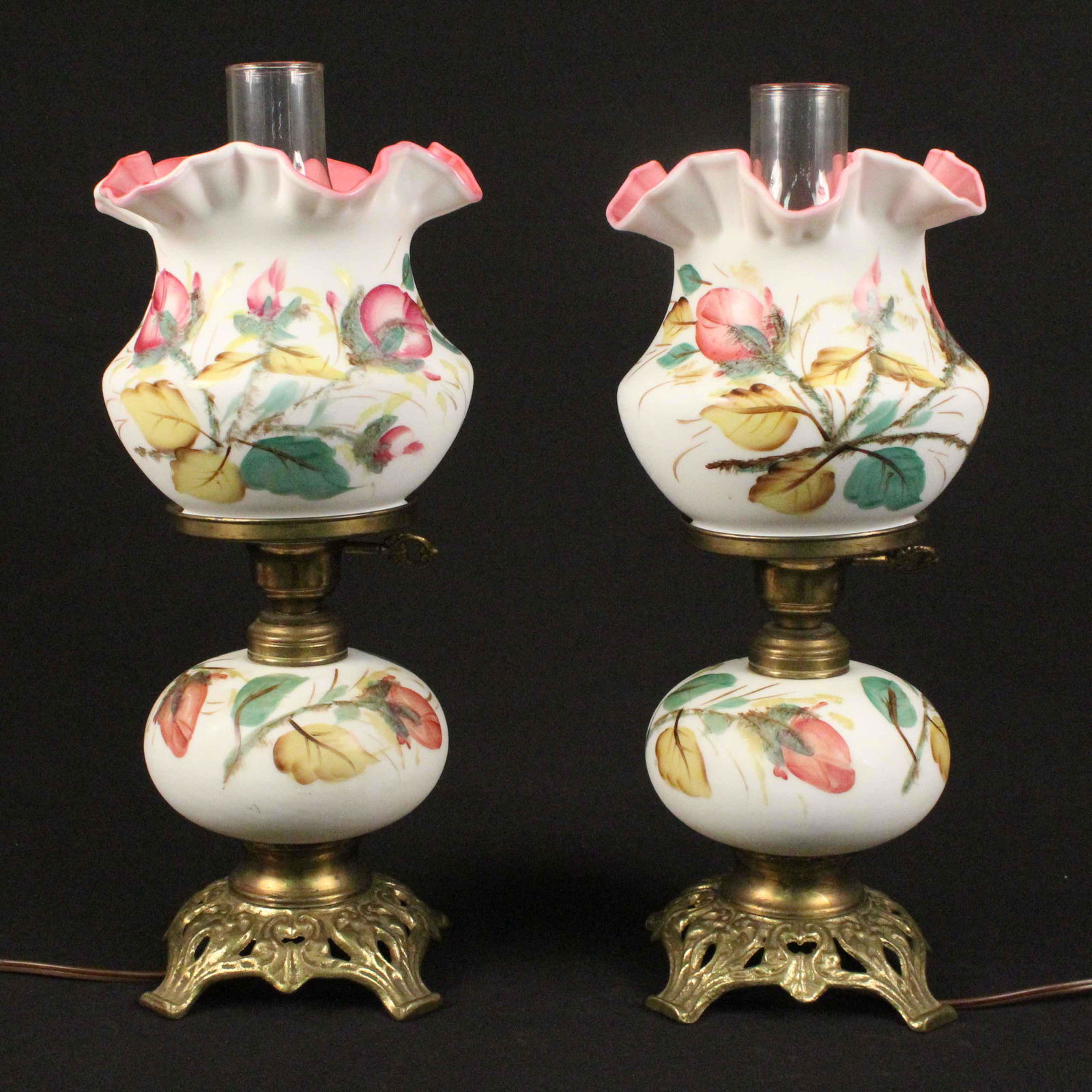 Pair LG Wright Moss Rose Hand Painted Lamps