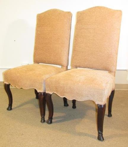 PAIR LIGHT PINK/PEACH COLORED SILK SIDE CHAIRS