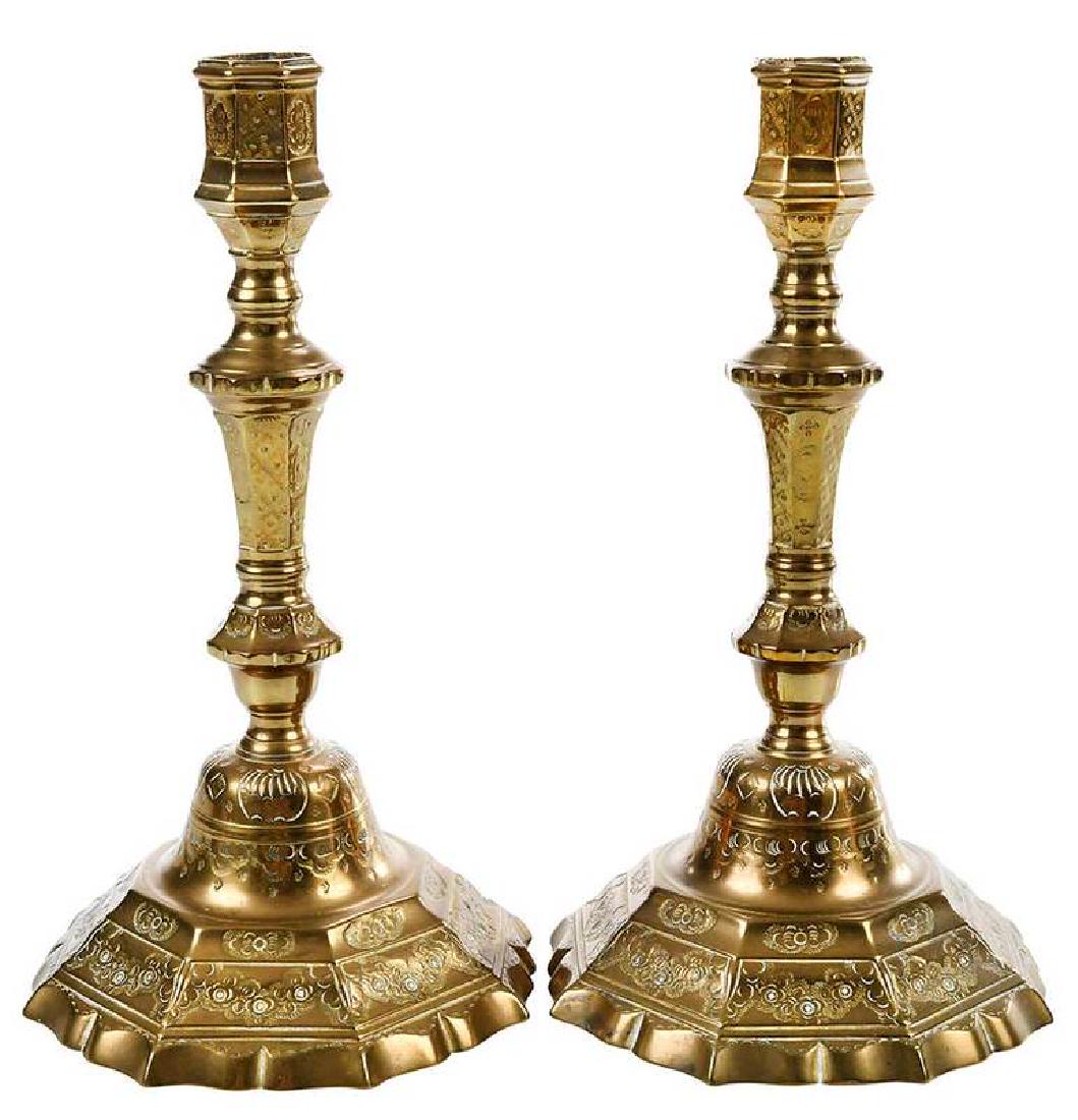 Pair Louis XV Brass Candlesticks