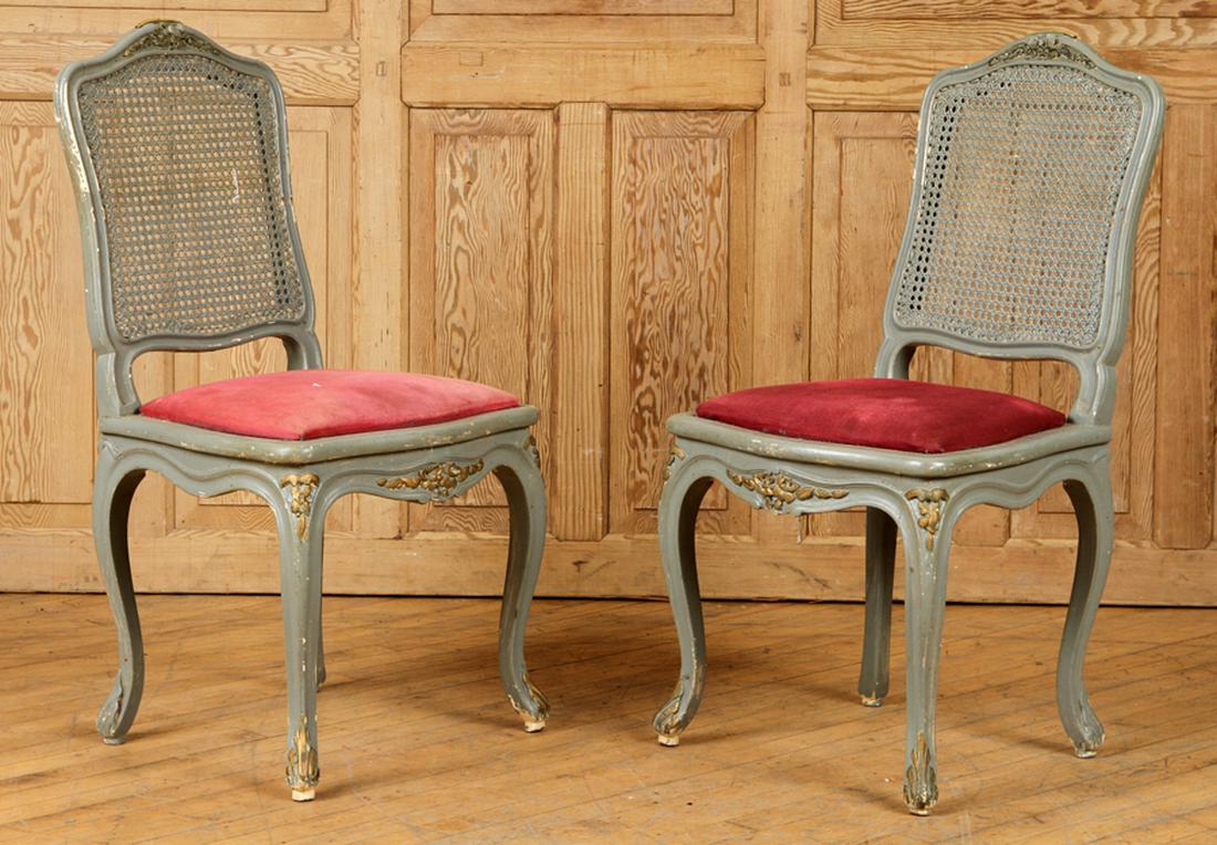 PAIR LOUIS XV STYLE CANE BACK SIDE CHAIRS