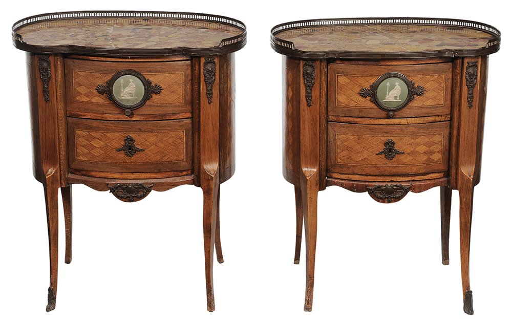 Y A PAIR OF GEORGE III KINGWOOD, ROSEWOOD AND HAREWOOD SERPENTINE COMMODES, CIRCA 17704 days LeftA Pair of Louis XV Style Marble Top Mahogany Side Cabinets (2) LOUIS XV STYLE MARQUETRY & MAHOGANY NIGHTSTANDSMar 29, 2026(2) NEOCLASSICAL STYLE MAHOGANY NIGHTSTANDSMar 29, 202619th Century French Marquetry Marble Top Commode2 days LeftLOUIS XV STYLE MARBLE TOP PARQUETRY COMMODE6 days LeftFRENCH LOUIS XVI STYLE MARBLE-TOP MAHOGANY COMMODEMar 27, 2026FRENCH LOUIS XVI STYLE MARBLE-TOP MAHOGANY BREAKFRONT SIDEBOARDMar 29, 2026FRENCH LOUIS XVI STYLE MARBLE-TOP MATCHED VENEER SIDEBOARDMar 29, 2026FRENCH LOUIS XVI STYLE MARBLE-TOP MAHOGANY COMMODEMar 29, 2026FRENCH LOUIS XVI STYLE MARBLE-TOP FLAME MAHOGANY COMMODEMar 29, 2026Two Louis XV Style Ormolu Mounted Kingwood and Tulipwood Gueridons,First Half 20th Century,Height ofMar 27, 2026(2) FRENCH LOUIS XV STYLE MARBLE-TOP KIDNEY-FORM MAHOGANY NIGHTSTANDSMar 29, 2026Pair of Louis XV-Style Marble-Top Side TablesMar 28, 2026(2) FRENCH LOUIS XVI STYLE MARBLE-TOP CANED & PAINTED BEDSIDE CABINETSMar 29, 2026Pair of Louis XVI Style Inlaid Marble Top Stands6 days Left