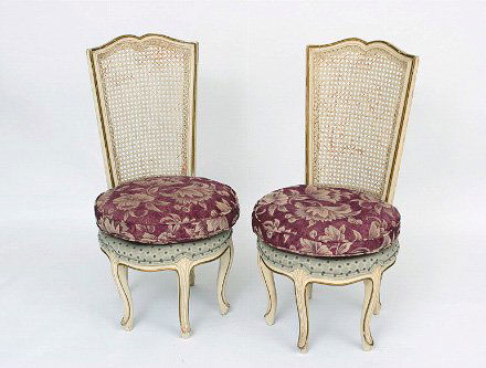Pair Louis XVth style Cane Back Side Chairs