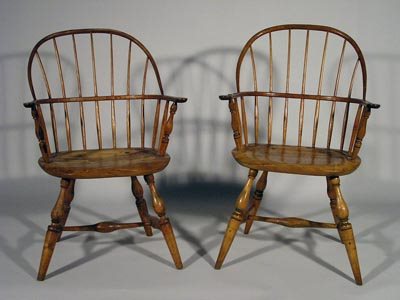 Pair Maple and Hickory Sack Back Windsor Armchairs