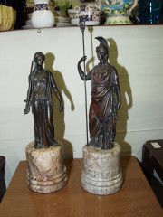 Pair Marble & Bronze Statues