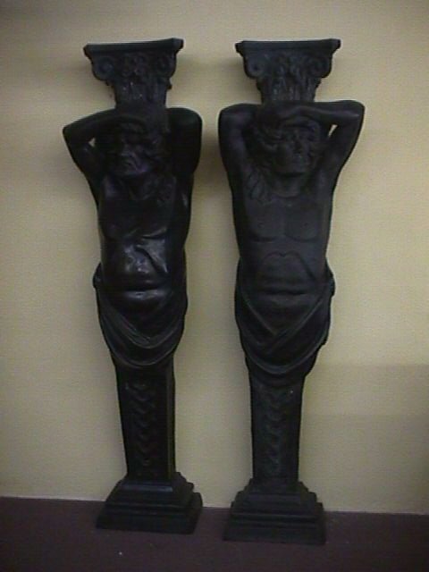 PAIR MASSIVE BRONZE SENTRY SCULPTURES No