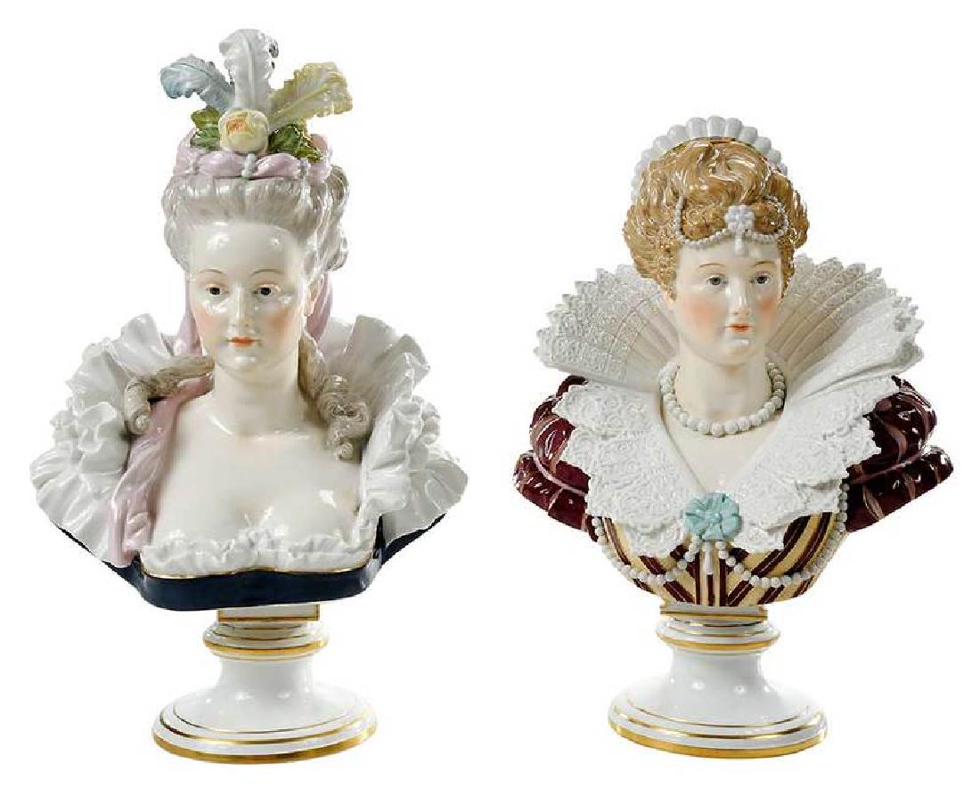 Pair Meissen Painted Porcelain Busts