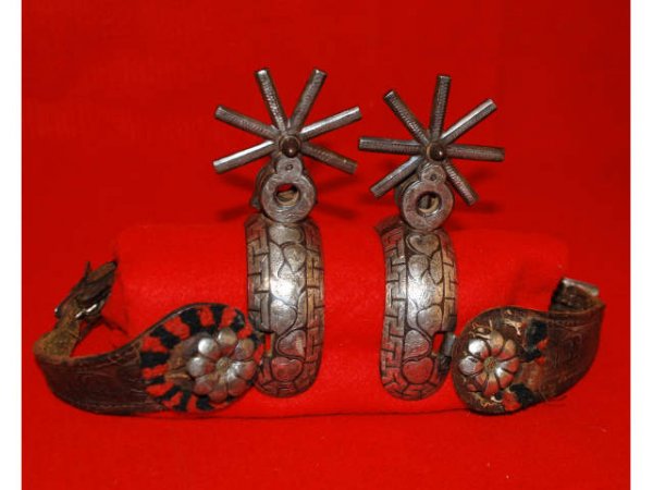 Pair Mexican Spurs With Silver Heart Shape Inlay