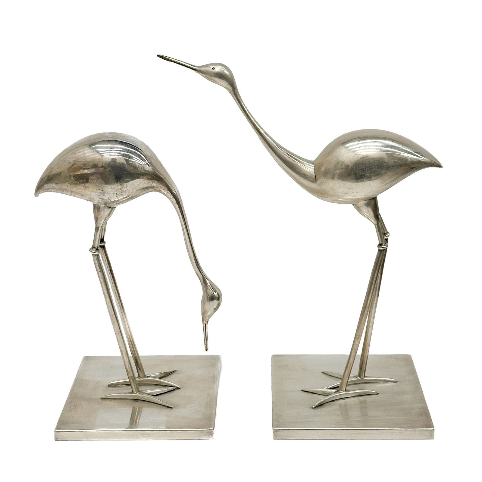 Pair Mexico Solid Sterling Silver Stork Bird Figural Bookends circa 1960