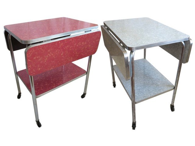Pair Mid-Century Formica Drop-leaf Serving Carts