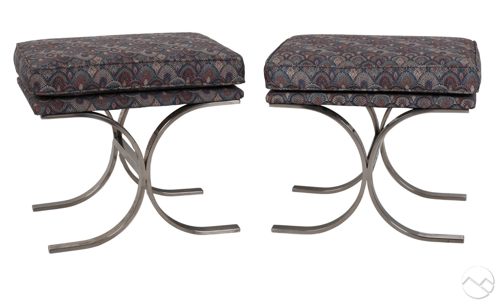 Pair Milo Baughman Style Chrome X Base Ottomans