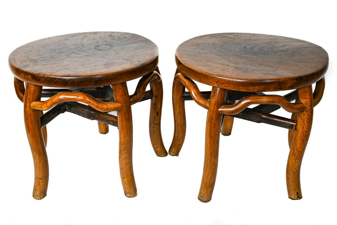 Pair Ming Dynasty Hardwood Round Stools