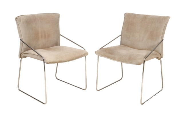 Pair Modern Chrome and Suede Armchairs